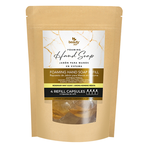El Jabón en Espuma para Manos de Beauty Soft protege e hidrata tu piel todos los días. La cápsula tiene una formulación concentrada y ecológica que se disuelve solo agregando agua tibia y después se puede reutilizar el envase.