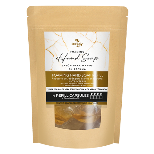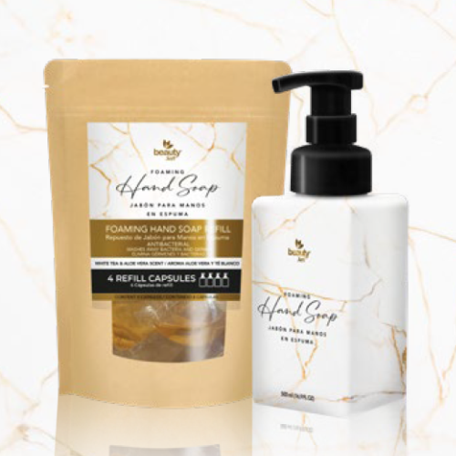 El Jabón en Espuma para Manos de Beauty Soft protege e hidrata tu piel todos los días. La cápsula tiene una formulación concentrada y ecológica que se disuelve solo agregando agua tibia y después se puede reutilizar el envase.
